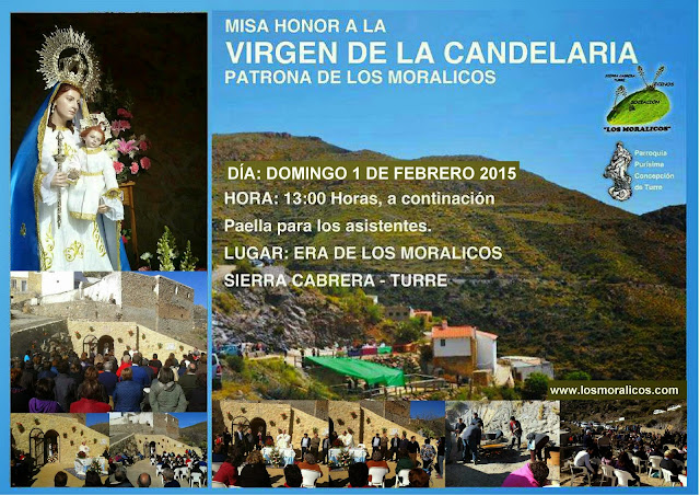 - A las 13:00 h. Bendición de la Virgen de la Candelaria, Patrona de Los Moralicos, en la Iglesia de Turre.
